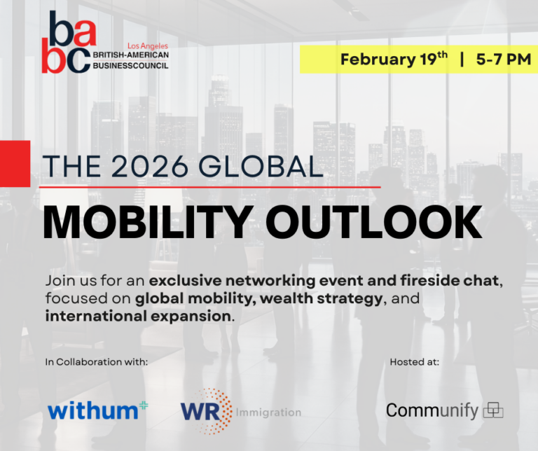 The British American Business Council Los Angeles, in exclusive partnership with Withum and Wolfsdorf Immigration, invites you to a high-level dialogue at the intersection of immigration policy, wealth strategy, and international expansion.